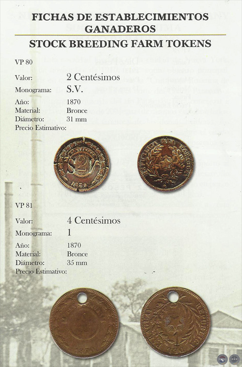 Fuente: FICHAS, VALES Y TOKENS DE LA REPÚBLICA DEL PARAGUAY 1863 - 2000. Editor: MIGUEL ANGEL PRATT MAYANS, Año 2009. NUMISMATICA INDEPENDENCIA S.A., Espacio web: www.nisa.com.py / Contacto: nisa@pla.net.py