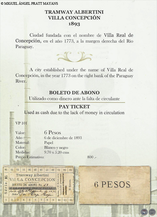 Fuente: FICHAS, VALES Y TOKENS DE LA REPÚBLICA DEL PARAGUAY 1863 - 2000. Editor: MIGUEL ANGEL PRATT MAYANS, Año 2009. NUMISMATICA INDEPENDENCIA S.A., Espacio web: www.nisa.com.py / Contacto: nisa@pla.net.py