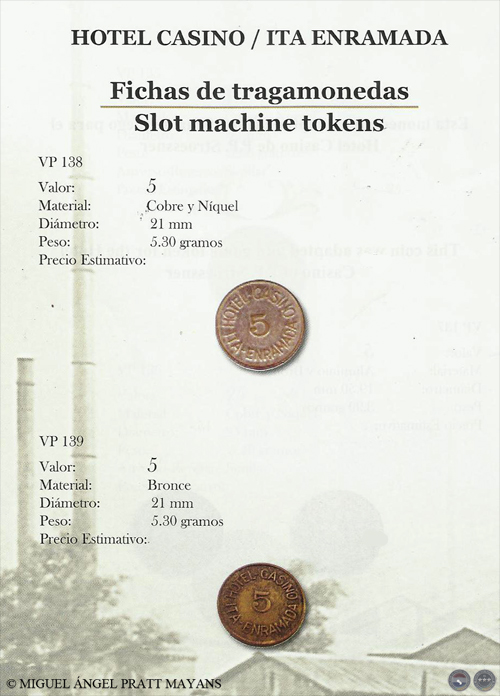 Fuente: FICHAS, VALES Y TOKENS DE LA REPÚBLICA DEL PARAGUAY 1863 - 2000. Editor: MIGUEL ANGEL PRATT MAYANS, Año 2009. NUMISMATICA INDEPENDENCIA S.A., Espacio web: www.nisa.com.py / Contacto: nisa@pla.net.py