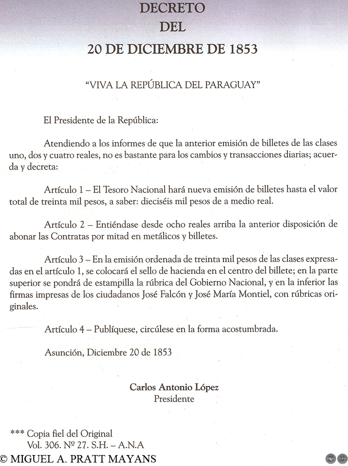 DECRETO DEL 20 DE DICIEMBRE DE 1853