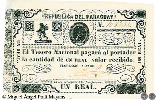 Fuente IMAGEN: “Emisiones de Papel Moneda, desde la Independencia hasta la aparición del GUARANÍ” – De la Conferencia del Ing. RAMÓN BENITEZ CIOTTI – Página web del BANCO CENTRAL DEL PARAGUAY – Referencia: