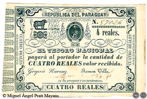 Fuente IMAGEN: “Emisiones de Papel Moneda, desde la Independencia hasta la aparición del GUARANÍ” – De la Conferencia del Ing. RAMÓN BENITEZ CIOTTI – Página web del BANCO CENTRAL DEL PARAGUAY – Referencia: