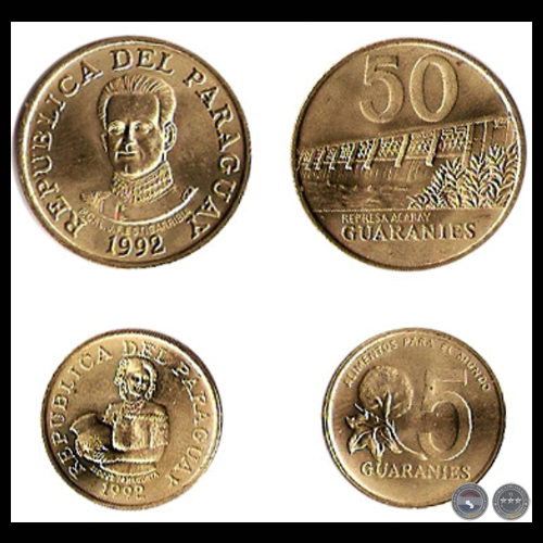 1992 - 5 y 50 GUARANÍES - ACUÑADAS EN ARMAT - CHILE - METAL: COBRE - ZINC - NIQUEL / BRONZE (DESMONETIZADAS EN 2011)
