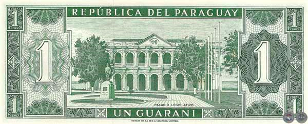 · El 5 de octubre de 1943, con el Decreto Ley Nº 655, se estableció el RÉGIMEN MONETARIO ORGÁNICO DE LA REPÚBLICA DEL PARAGUAY. Se instituyo el nombre GUARANÍ para la unidad monetaria creada, siendo dividido en 100 partes iguales, denominados céntimos y su símbolo: la letra G cruzada por una barra.