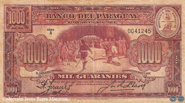 El Banco de la República del Paraguay (actualmente Banco Central del Paraguay) con acuerdo del Ministerio de Hacienda, determinó los materiales, diseño, leyendas y demás características de los billetes y monedas.