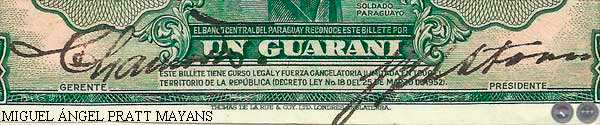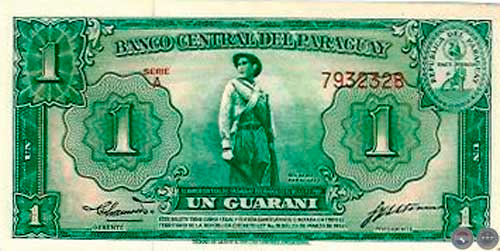 El 5 de octubre de 1943, con el Decreto Ley Nº 655, se estableció el RÉGIMEN MONETARIO ORGÁNICO DE LA REPÚBLICA DEL PARAGUAY. Se instituyo el nombre GUARANÍ para la unidad monetaria creada, siendo dividido en 100 partes iguales, denominados céntimos y su símbolo: la letra G cruzada por una barra.