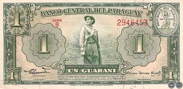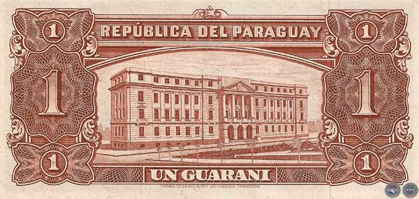 El 5 de octubre de 1943, con el Decreto Ley Nº 655, se estableció el RÉGIMEN MONETARIO ORGÁNICO DE LA REPÚBLICA DEL PARAGUAY. Se instituyo el nombre GUARANÍ para la unidad monetaria creada, siendo dividido en 100 partes iguales, denominados céntimos y su símbolo: la letra G cruzada por una barra.