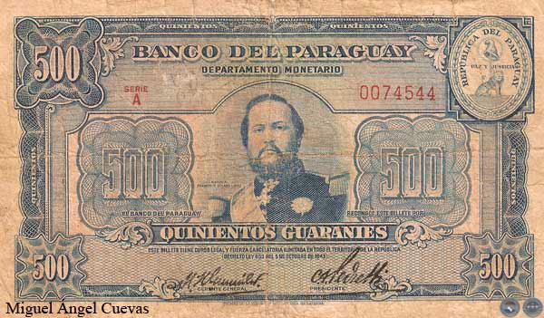El Banco de la República del Paraguay (actualmente Banco Central del Paraguay) con acuerdo del Ministerio de Hacienda, determinó los materiales, diseño, leyendas y demás características de los billetes y monedas.