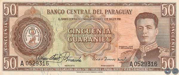 . El 5 de octubre de 1943, con el Decreto Ley Nº 655, se estableció el RÉGIMEN MONETARIO ORGÁNICO DE LA REPÚBLICA DEL PARAGUAY. Se instituyo el nombre GUARANÍ para la unidad monetaria creada, siendo dividido en 100 partes iguales, denominados céntimos y su símbolo: la letra G cruzada por una barra. · Las monedas y los billetes con la nueva denominación están en circulación, desde 1944 hasta nuestros días