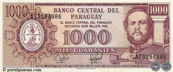 Enlace recomendado: 2009 - DESMONETIZACIÓN BILLETES DE G. 1.000 (SERIES: A, B, C, D) y MONEDAS DE 1, 5, 10, 50, 100 y 500 GUARANÍES (ACUÑADAS ENTRE 1975 y 2005)