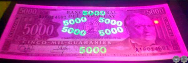 BILLETES 5000 GUARANÍES, SERIE "A" - PROTECCIÓN BAJO LUZ ULTRAVIOLETA