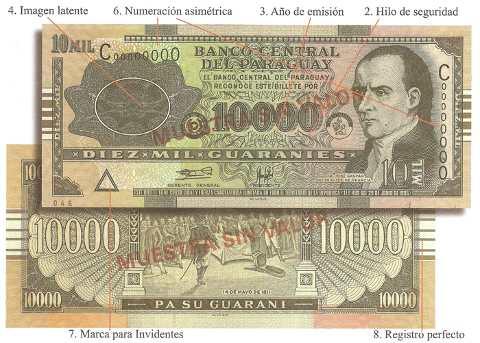 De conformidad al artículo 39 de la Ley N° 489/95 "Orgánica del Banco Central del Paraguay", se pone a conocimiento del público las características de los billetes de G 10.000, serie 2.004, emitidas por el Banco Central del Paraguay.