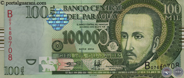 De conformidad al artículo 39 de la Ley N° 489/95 "Orgánica del Banco Central del Paraguay", se pone a conocimiento del público las características de los billetes de G/100.000, serie 2.004, emitidas por el Banco Central del Paraguay.