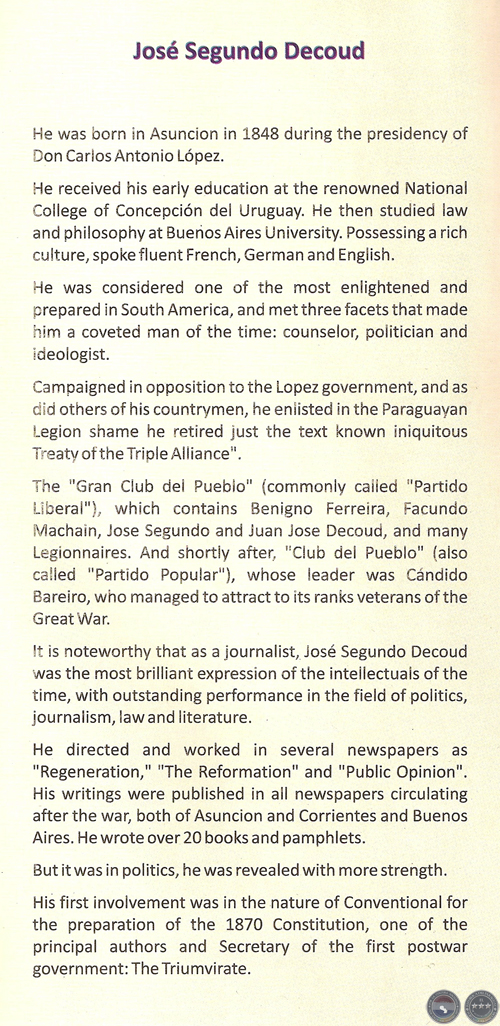 Cabe mencionar que como labor periodística, José Segundo Decoud fue la expresión más brillante de los intelectuales de la época, con destacada actuación en el campo de la política, del periodismo, del derecho y de las letras.