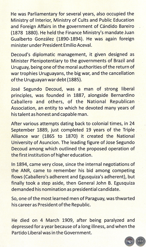 "100 AÑOS DE LA MUERTE DEL DR. JOSÉ SEGUNDO DECOUD"