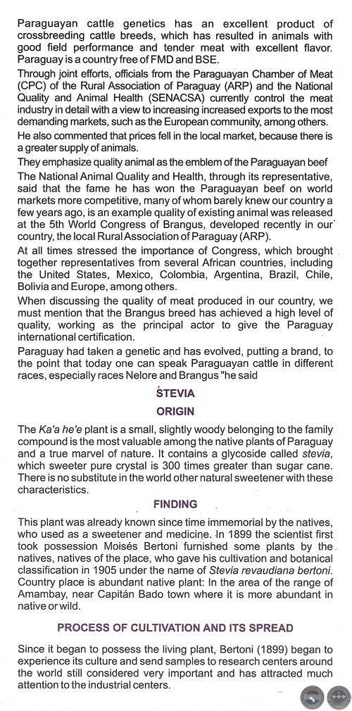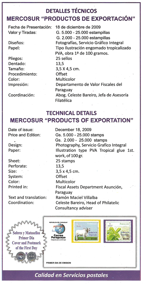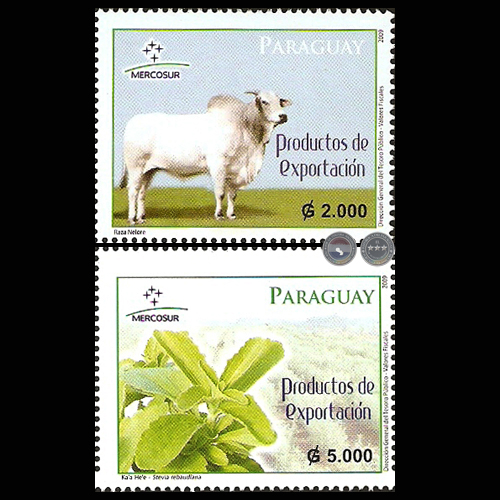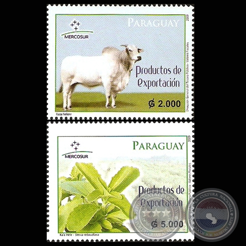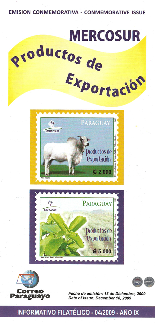 Valor y Tiradas: G. 5.000 - 25.000 estampillas (CARNE PARAGUAYA: RAZA NELORE)/ G. 2.000 - 25.000 estampillas (KA’A HE’E – STEVIA REBAUDIANA)