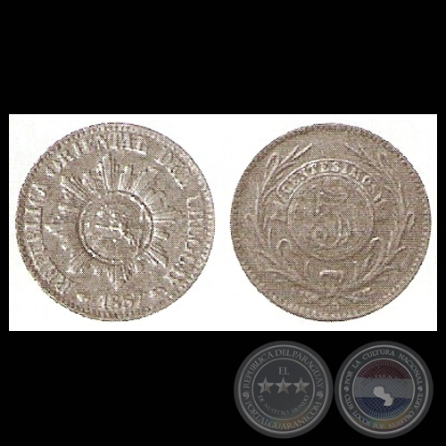 We are aware of the existence of a small die with which various coins from other countries which were circulating in Paraguay were countermarked.