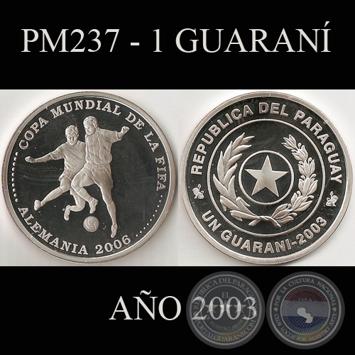 2003 - UN GUARANÍ - CONMEMORATIVA A LA COPA MUNDIAL DE FÚTBOL ALEMANIA 2006 - ACUÑADA EN DEUTSCHE NICKEL - GERMANY - METAL: PLATA