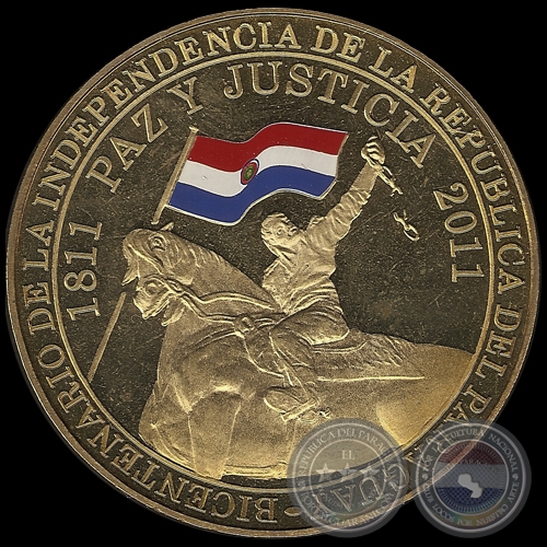 En la parte superior : Bicentenario de la Independencia de la Republica del Paraguay - 1811 Paz y Justicia 2011