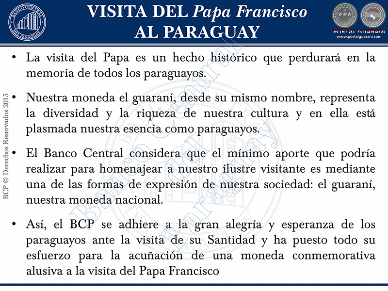 MONEDA CONMEMORATIVA "VISITA DEL PAPA FRANCISCO AL PARAGUAY"