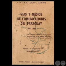 2.- VIAS Y MEDIOS DE COMUNICACIONES DEL PARAGUAY (1811-1961). Por Cnel. D.E.M. RAMÓN C. BEJARANO. Editorial TOLEDO. Asunción – Paraguay. Talleres Gráficos DIDOT S.R.L. Buenos Aires - Argentina, Mayo 1963 (262 páginas)