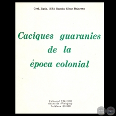 1.- CACIQUES GUARANÍES DE LA ÉPOCA COLONIAL. GRAL. BGDA. (SR) RAMÓN CÉSAR BEJARANO. Editorial TOLEDO. Asunción - Paraguay 1979 (16 páginas)
