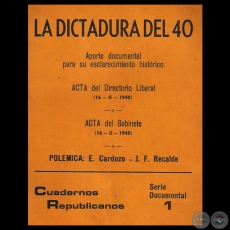Tras realizar una ardua labor de investigación, compilación y selección documental redactamos 25 cuadernillos que cubren, en lo fundamental, el periodo 1940-1947 de nuestro proceso político. Finalizada esta serie, publicaremos otra que consta de 15 cuadernillos y en la que está incluida la documentación política correspondiente a la etapa 1935-1940 de nuestra historia política. Con esto creemos contribuir positivamente al mejor conocimiento de nuestro proceso histórico, exhumando documentos que yacían sencillamente olvidados o que, por su capital importancia, manos astutas lo habían sustraído prácticamente de la circulación pública.