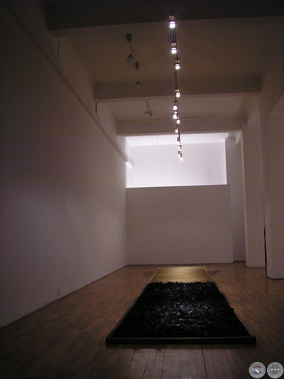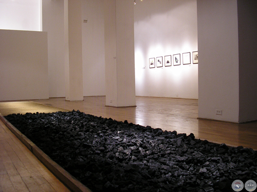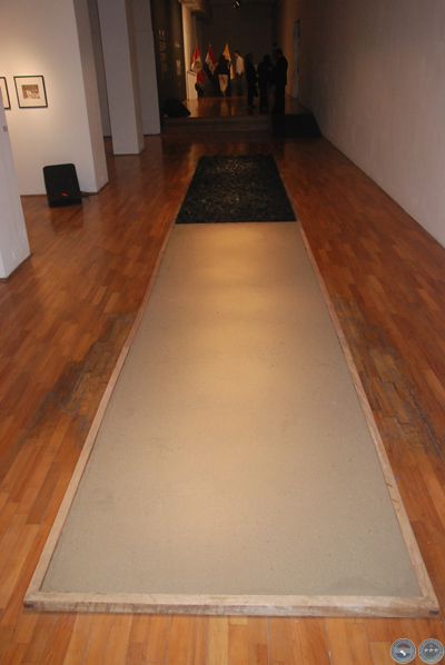 El carbón y la arena fueron los materiales usados, colocados en contenedores sobre el piso, midiendo cada uno veinte metros de largo por dos metros de ancho.